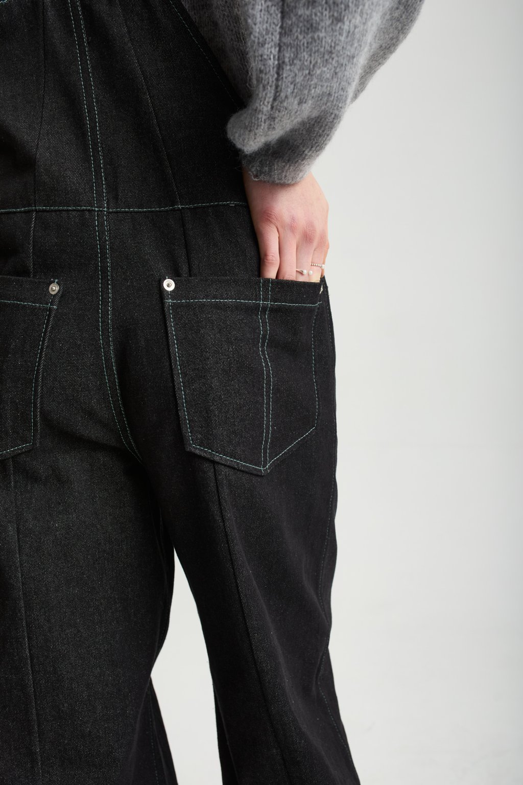 Ušili jsme je z pevného šedého denimu, který díky kontrastnímu mintovému prošívání působí hravě. Široké nohavice dodávají ležérní vibe, originálním detailem jsou puky na zadních nohavicích a kvalitní kovové zapínání z Itálie je jistotou, že tě podrží při každém kroku. Samozřejmostí jsou i praktické kapsy. Saša jsou kousek, ve kterém se cítíš pohodlně – a přitom máš outfit, který má styl.